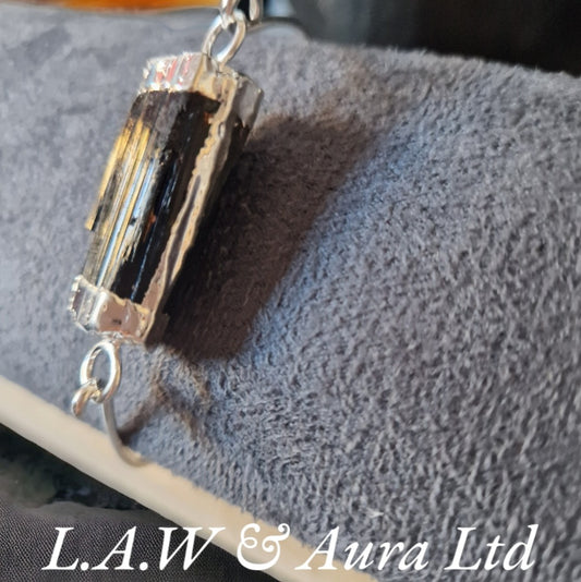 Brazilian Tourmaline Wire Wrapped Silver Plated Bangle 🖤✨️