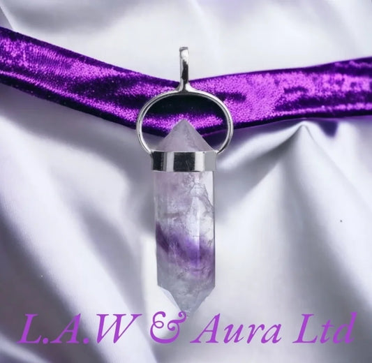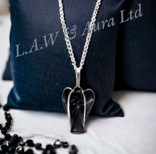 Gemstone Guardian Angel Pendant - Amethyst, Rose Quartz, Rock Crystal, Black Agate, Tigers Eye