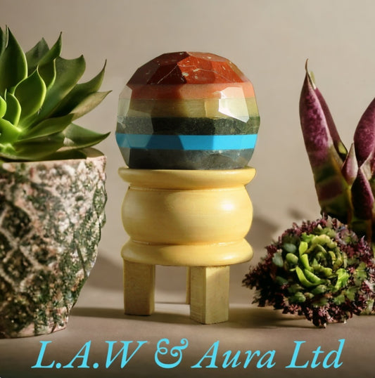 Gemstone Faceted Healing Ball & Stand - Seven Chakra