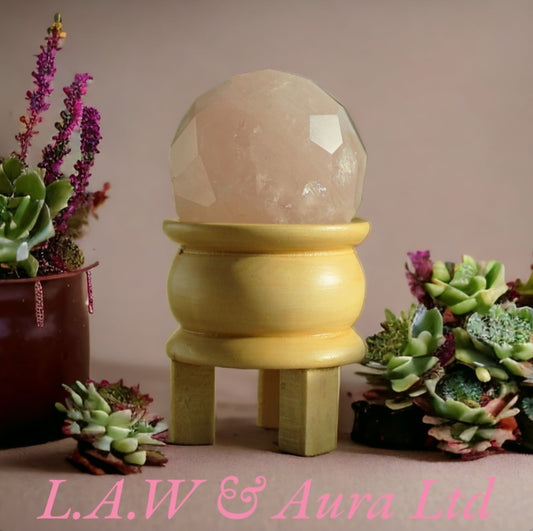 Gemstone Faceted Healing Ball & Stand - Rose Quartz