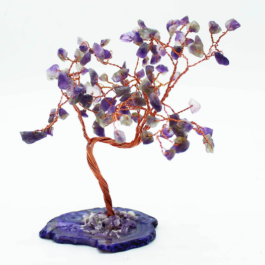 Lrg Gemstone Tree - Amethyst on Natural Agate Base (100 stones)