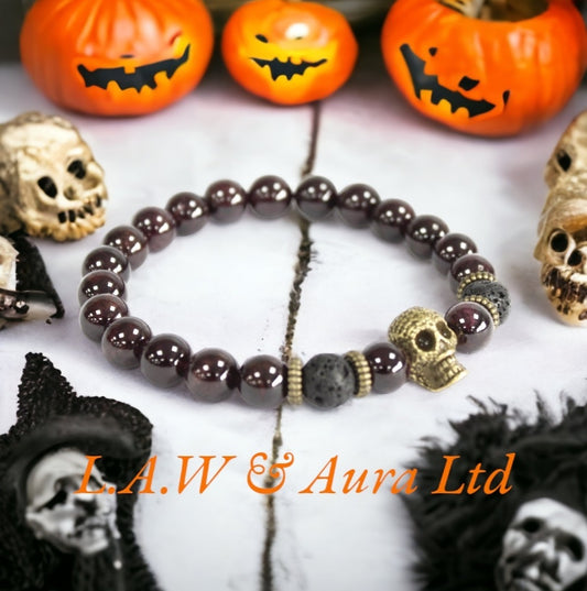Bronze Skull / Blood Stone - Gemstone Bracelet
