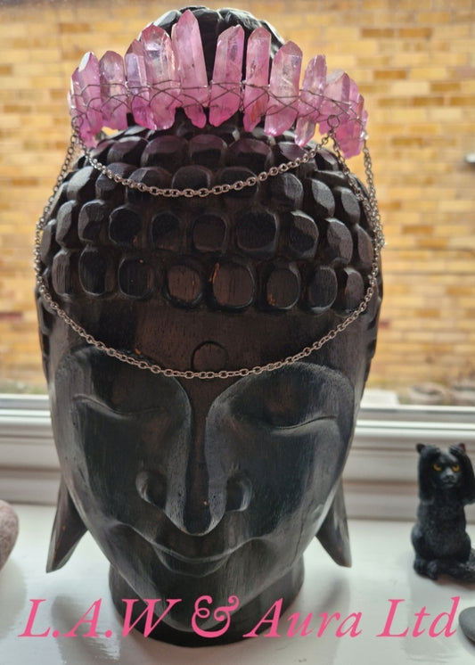 Pink Quartz Headband Hand Made for Head Hoop Alloy Wire Entangle Daily Hair Decoration