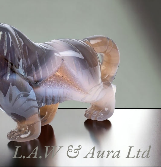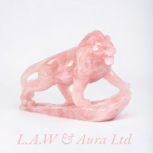 Rose Quartz Lion Carving with base 6.75x2.25x5"