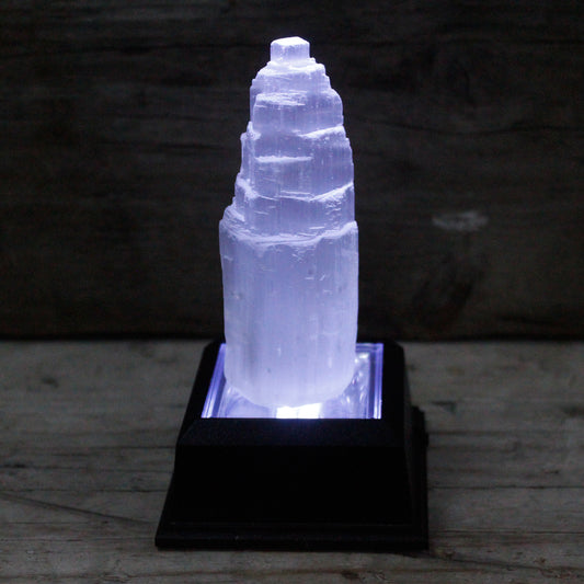 Natural Selenite Tower Lamp - 15 cm