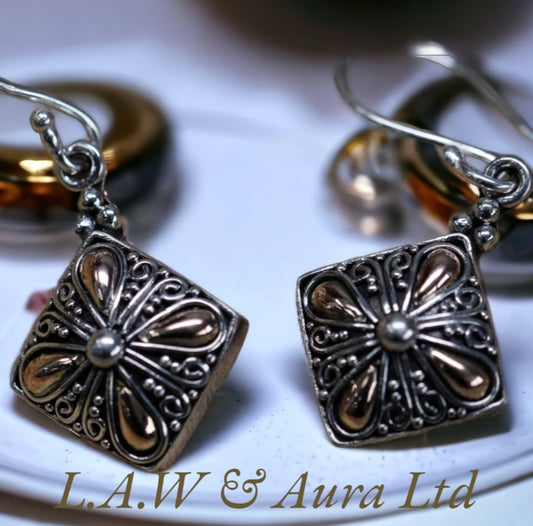 Silver & Gold Earring - Square Drop