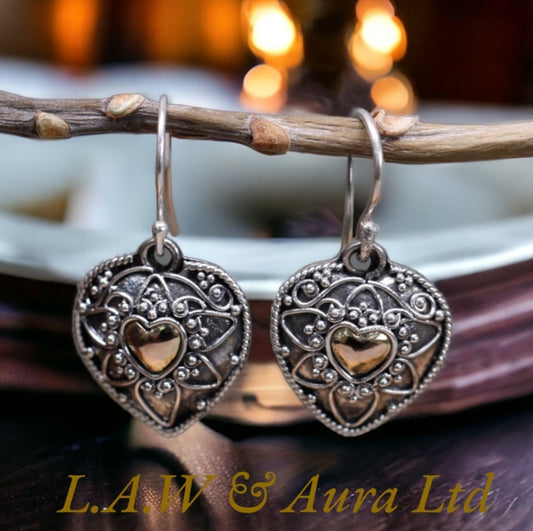Silver & Gold Earring - Mandala Hearts
