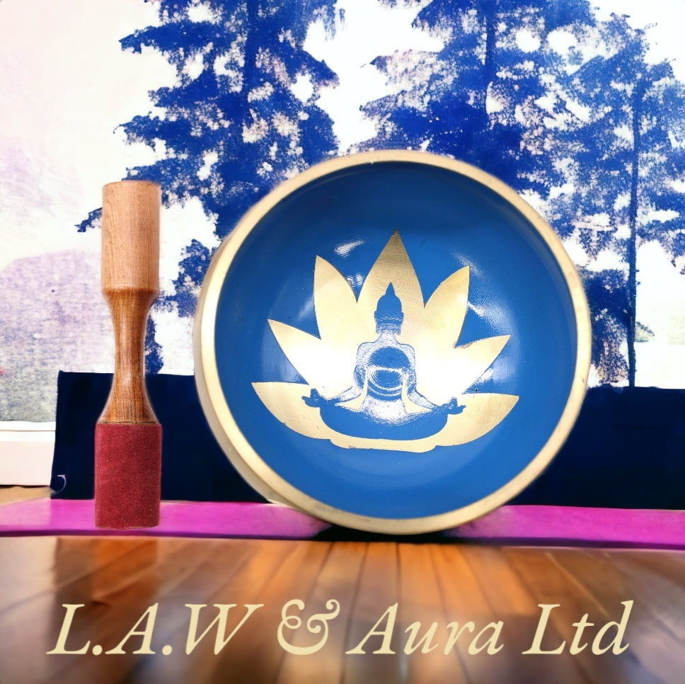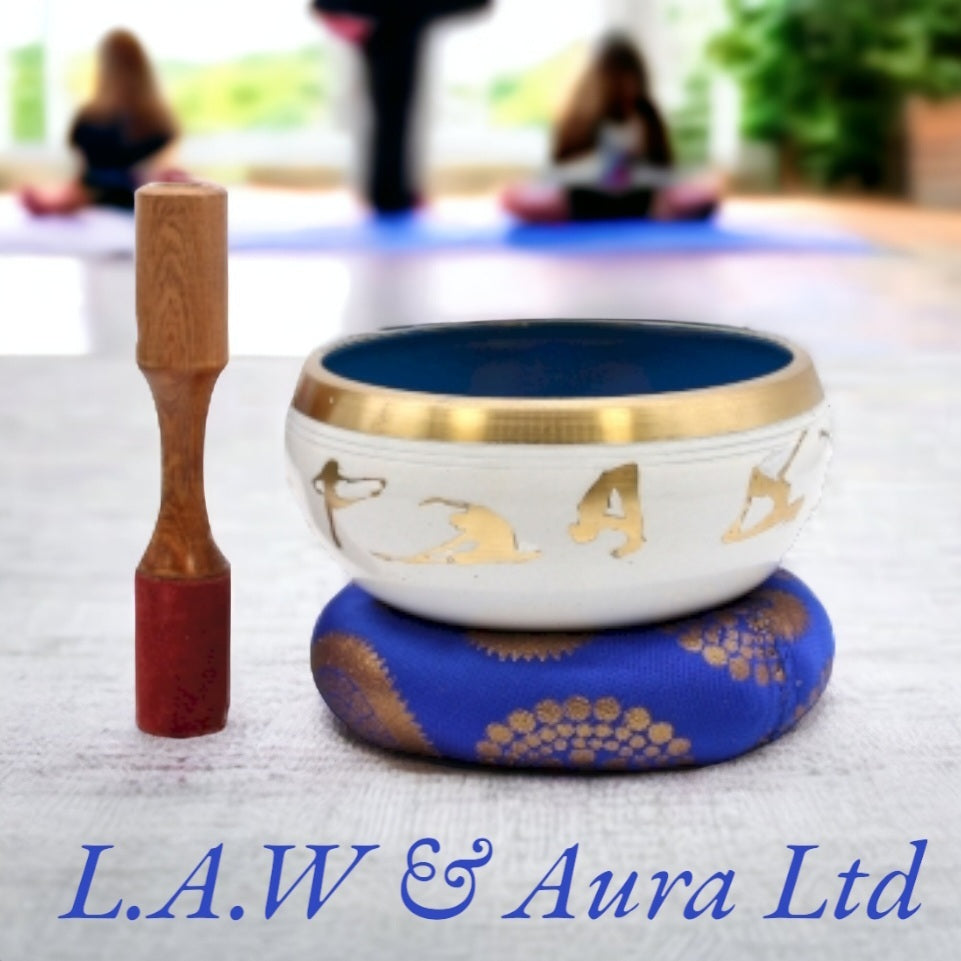 Lrg Yoga Moves Singing Bowl Set- White/Blue 14cm